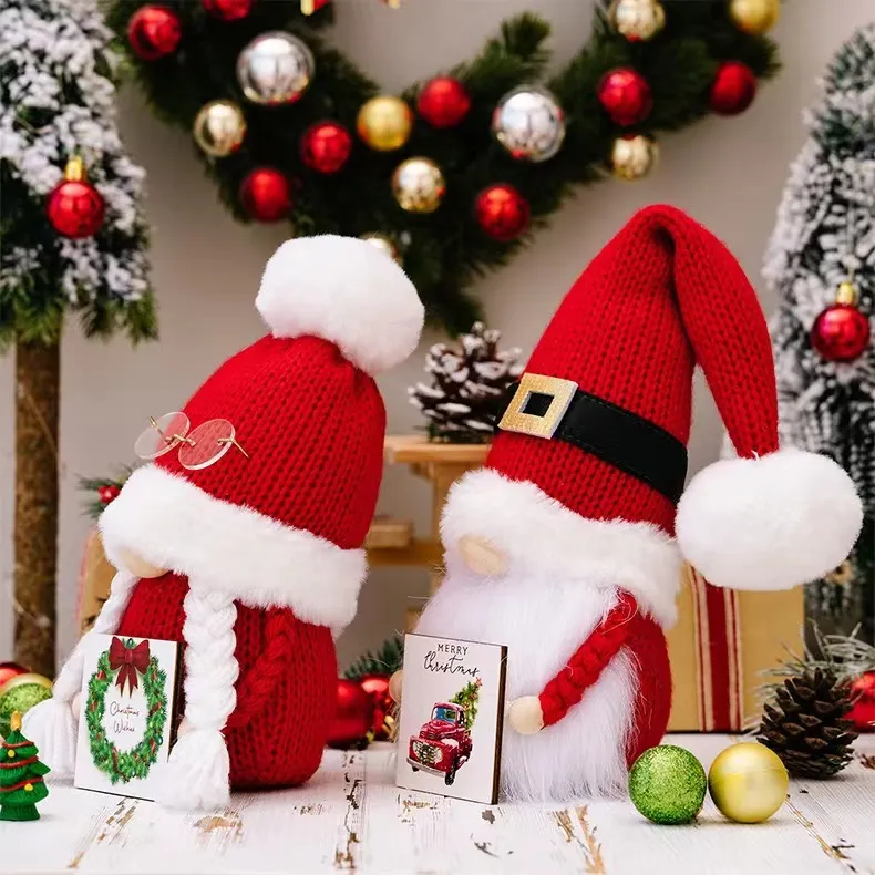 Poupée De Noël Sans Visage, Boule De Laine, Chapeau Tricoté Rouge